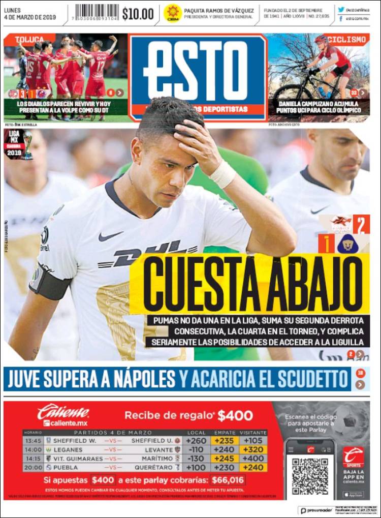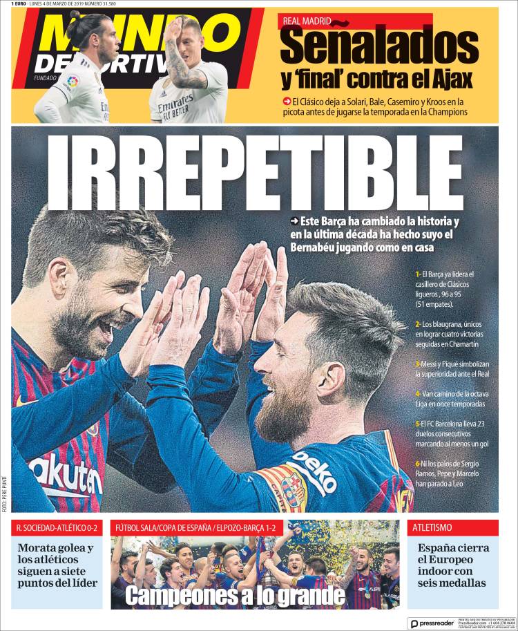 Portadas de los diarios deportivos del 04 de marzo de 2019