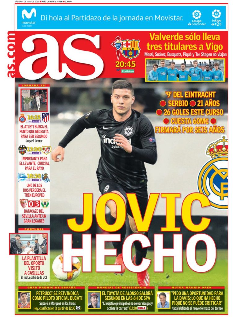 Portadas de los diarios deportivos del 04 de mayo de 2019