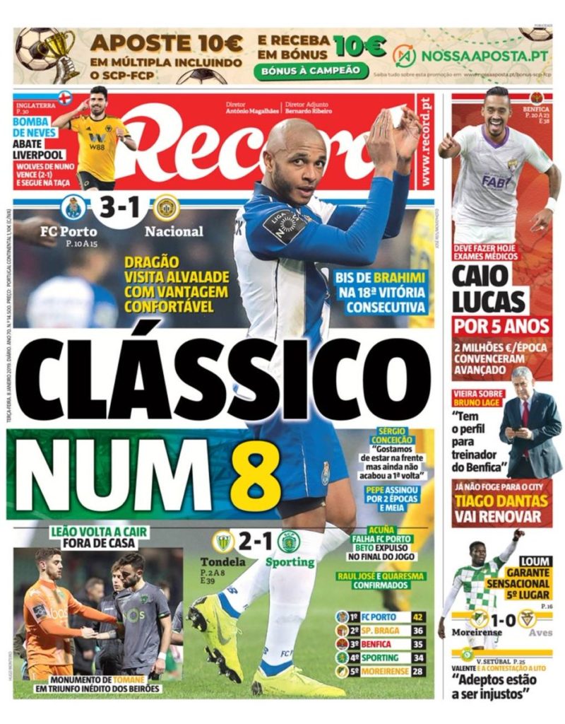 Portadas de los diarios deportivos del 08 de enero de 2019
