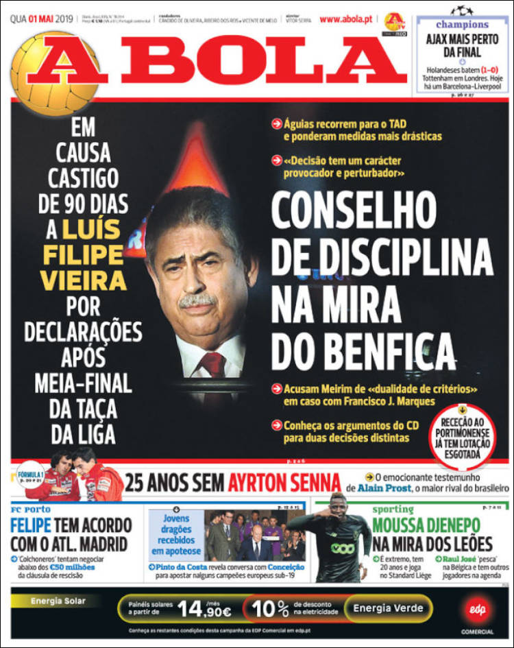 Luís Filipe Vieira, presidente del Benfica, fue sancionado por los dirigentes de la liga de Portugal tras realizar declaraciones inapropiadas. (A Bola)