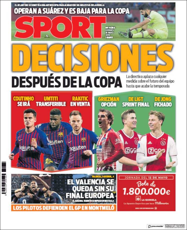 diarios deportivos del 10 de mayo de 2019