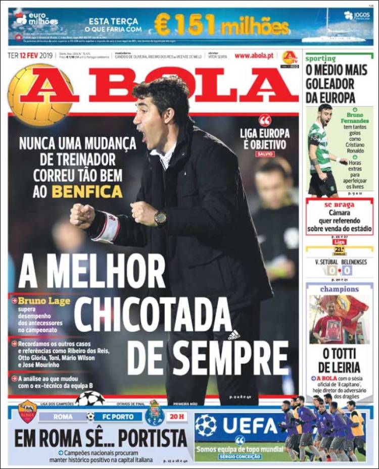 Bruno Lage, actual estratega del Benfica, dijo que «nunca un cambio de entrenador le había caído tan bien al Benfica». (A Bola)