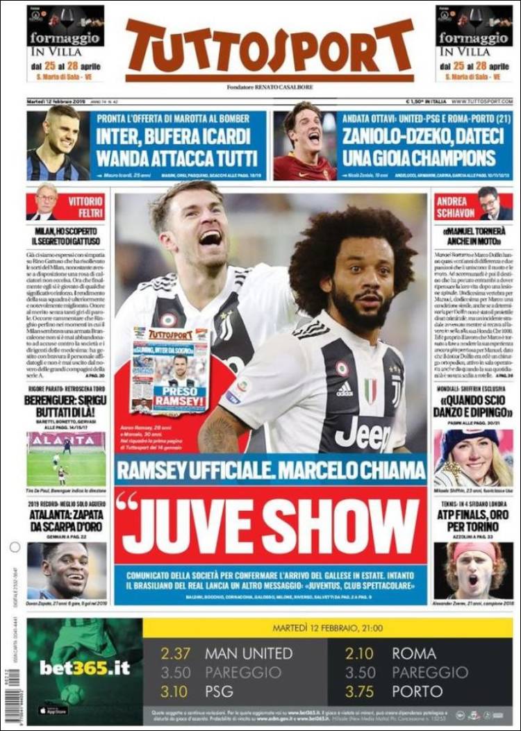 Aaron Ramsey es nuevo jugador de la Juventus y se incorporará en junio y Marcelo volvió hablar de la Juve. (Tuttosport)