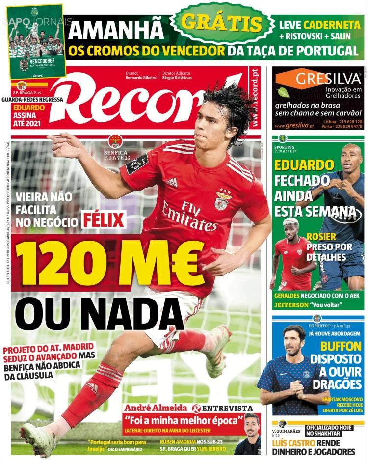 Gabriel Appelt Pires antes de que llegara al Benfica fue observado 2 años antes, lo que permitió que el club decidiera ficharlo. (A Bola) El Benfica quiere 120 millones de euros por Joao Félix o nada. (Record) Vincent Aboubakar se recuperó de una lesión y podría estar presente en la pretemporada del Porto. (O Jogo) Alexis Mac Allister, el mediocampista que buscan varios equipos del futbol argentino. (Olé) Juárez compró la franquicia de Lobos BUAP y el club fronterizo ya es de primera división. (Cancha) La Selección de Francia goleó a Andorra, partido correspondiente a la Clasificación para la Euro. (L’Equipe) Los ‘Bravos’ de Juárez se convirtieron en equipo de Liga MX. (Esto) Matthijs de Ligt está cansando al Barça y podría quedar fuera del radar del club blaugrana. (Sport) Antoine Griezmann se convertiría en nuevo jugador del Barcelona. (Mundo Deportivo) Zinedine Zidane confía en que Vinicius tendrá una interesante segunda campaña con el Real Madrid. (Marca) El Atlético de Madrid ya ofreció al Benfica 60 millones de euros por Joao Félix y 20 más en variables. (As) Chivas buscará fichar a dos refuerzos más, a parte de Briseño, Álvarez y Torres Nilo. (Récord)Relacionado