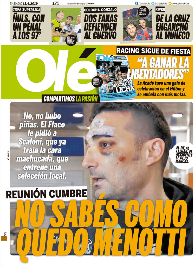 Lionel Scaloni, regresó a Argentina para continuar su preparación de cara a la Copa América, después del accidente que tuvo en España. (Olé)