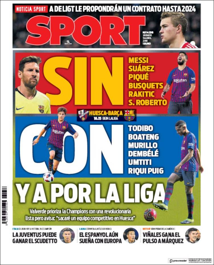 El Barça enfrentará al Huesca con varios suplentes. (Sport)
