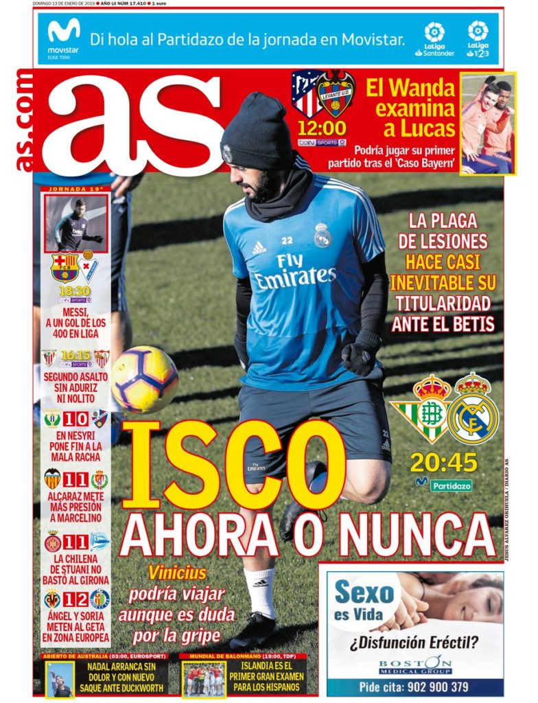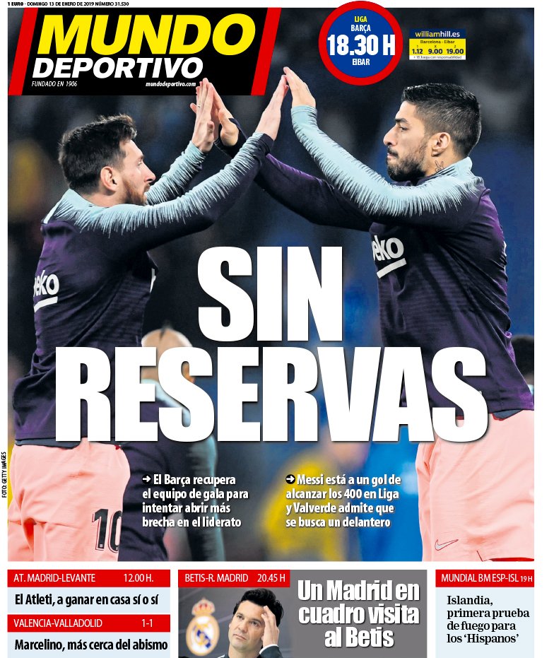 Portadas de los diarios deportivos del 13 de enero de 2019