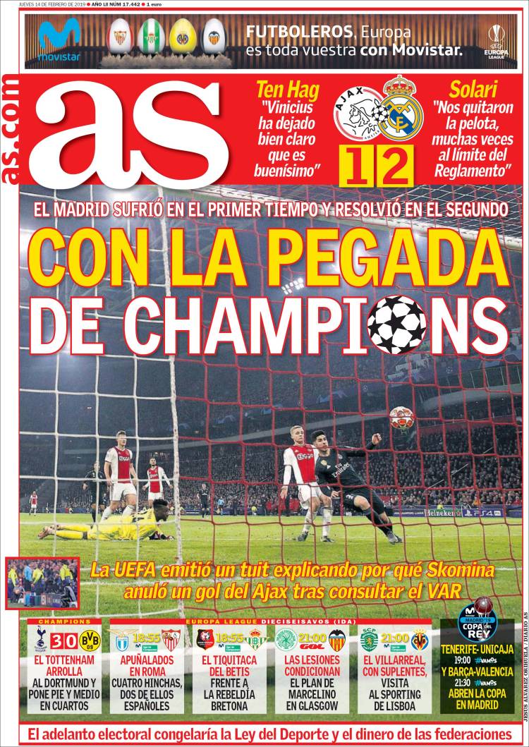 El Real Madrid derrotó al Ajax en los Octavos de Final de la Champions League. (As)