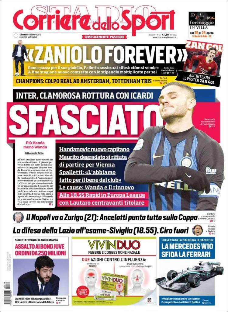 Al conocer que Samir Handanovič sería el nuevo capitán del Inter de Milán, bastó para que se revelaran los problemas de Mauro Icardi con el club. (Corriere dello Sport)