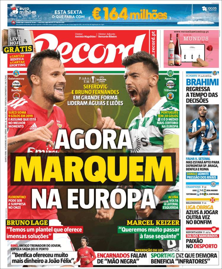 El Benfica y Sporting de Lisboa tendrán la tarea de enamorar a sus fanáticos con destacadas participaciones en sus partidos de Europa League. (A Bola)