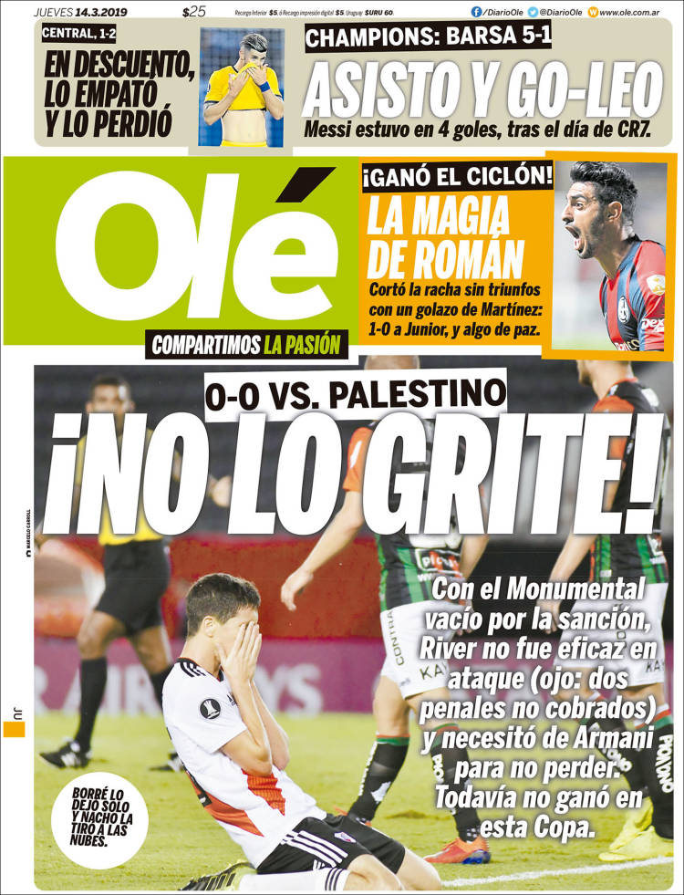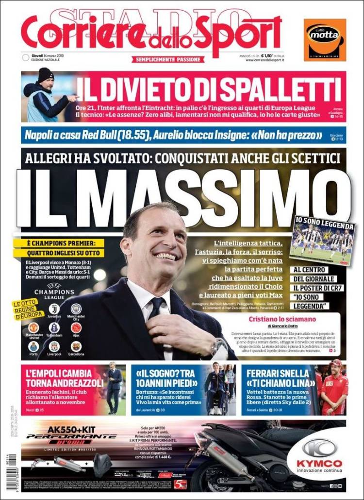 El Real Madrid fichó a Éder Militao, actual jugador del Porto. (Marca) El Olympique de Lyon fue eliminado de la Champions League tras ser goleado por el Barça. (L’Equipe) El Benfica buscará revertir el marcador global en su casa y avanzar a los Cuartos de Final de la Europa League. (A Bola) Diego Armando Maradona elogió el trabajo que ha hecho Cristiano Ronaldo con la Juventus. (Tuttosport) River Plate empató frente al Palestino de Chile en la Copa Libertadores. (Olé) Gelson Martins podría salir del Atlético de Madrid para fichar por el Mónaco. (Record) Los directivos del Porto no temen enfrentarse a mejores equipos en los Cuartos de Final de la Champions League. (O Jogo) A Messi le bastó 2 goles y 2 asistencias para eliminar al Olympique de Lyon de la Champions League. (Mundo Deportivo) América avanzó a las Semifinales de la Copa MX luego de vencer a Chivas en el ‘Clásico Nacional’. (Cancha) América venció a Chivas en los Cuartos de Final de la Copa MX. (Esto) Zinedine Zidane pidió compromiso a sus jugadores, en su primer entrenamiento con el Real Madrid. (As) El Barça volvió hacer de las suyas para avanzar a los Cuartos de Final de la Champions League. (Sport) Massimiliano Allegri disfruta del momento que está viviendo con la Juventus. (Corriere dello Sport)Relacionado