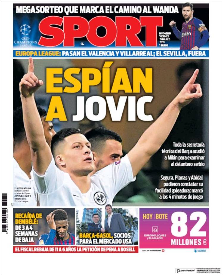 Éder Militao se convirtió en uno de los defensas más caros que ha fichado el Real Madrid. (Marca) El Rennes de Francia quedó eliminado de la Europa League tras caer en los Octavos de Final ante el Arsenal. (L’Equipe) Pumas visitará a Puebla este viernes para inaugurar la jornada 11 de la Liga MX. (Récord) El Inter de Milán quedó eliminado de la Europa League luego de perder frente al Eintracht Frankfurt. (Corriere dello Sport) Éder Militao fue fichado por el Real Madrid. (As) El Benfica continúa sorprendiendo en la Europa League. (A Bola) Cristiano Ronaldo no ha sido investigado por la UEFA, tras los insultos que le hizo a varios hinchas del ‘Atleti’. (Tuttosport) Luka Jović se ha convertido en la obsesión del Barça. (Sport) El Benfica goleó en su casa al Dinamo Zagreb en el juego de vuelta de los Octavos de Final de la Europa League. (Record) Fernando Gago dejó de pertenecer al Boca Juniors. (Olé) El Benfica logró avanzar a los Cuartos de Final de la Europa League. (O Jogo) Jesús Molina es el único jugador en Chivas que ha disputado varios Clásicos en el futbol mexicano. (Esto) La directiva y cuerpo técnico de Chivas se encuentran en una etapa de desesperación tras los malos resultados en Liga y Copa MX. (Cancha) Ousmane Dembélé podría tener actividad con el Barça en los Cuartos de Final de la Champions League. (Mundo Deportivo)Relacionado