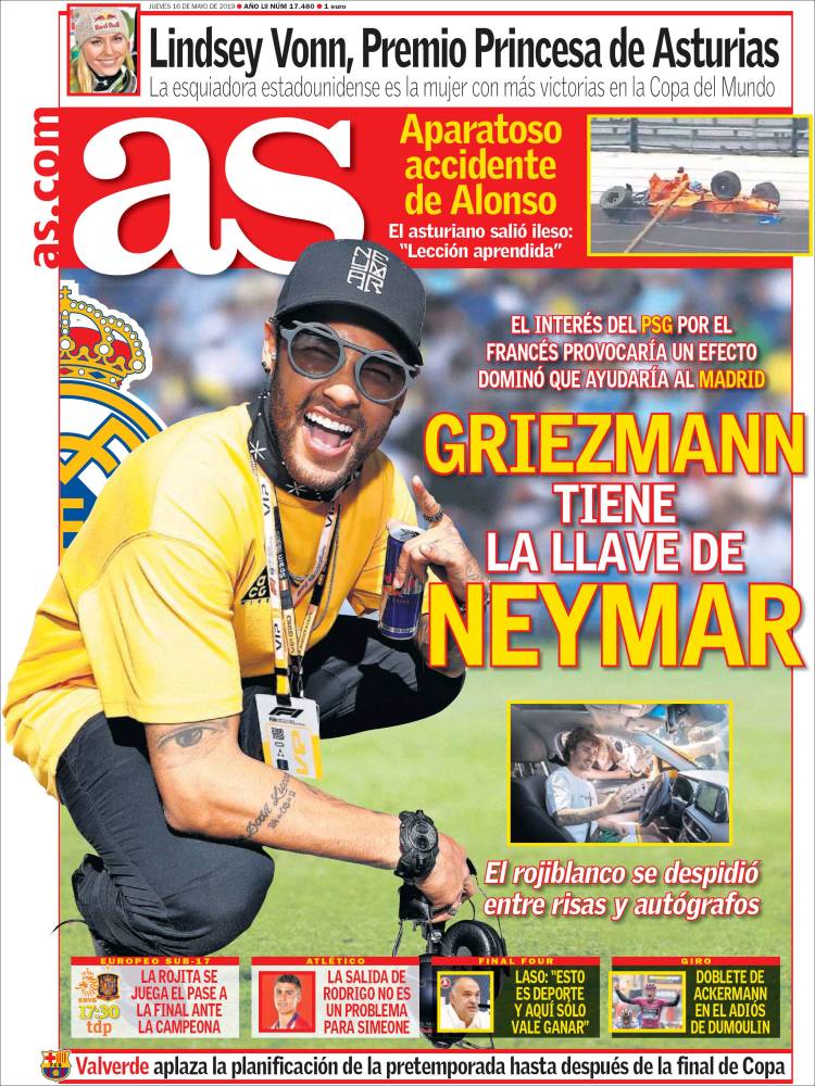 La posible llegada de Antoine Griezmann al PSG podría facilitarle las cosas al Real Madrid y logre fichar a Neymar. (As)