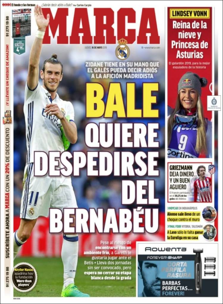 Todo indica que Gareth Bale sí saldrá del equipo merengue y quiere despedirse de la afición en el Bernabéu. (Marca)