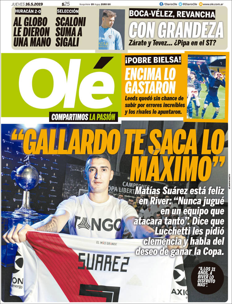 Matías Suárez señaló que esta muy contento de jugar con la playera de River y desea ganar la Copa Libertadores. (Olé)