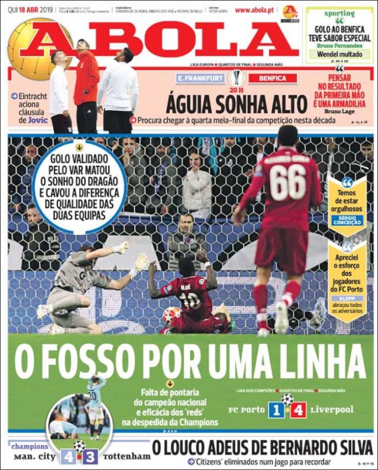 El Porto fue goleado en casa y eliminado de Champions. (A Bola)