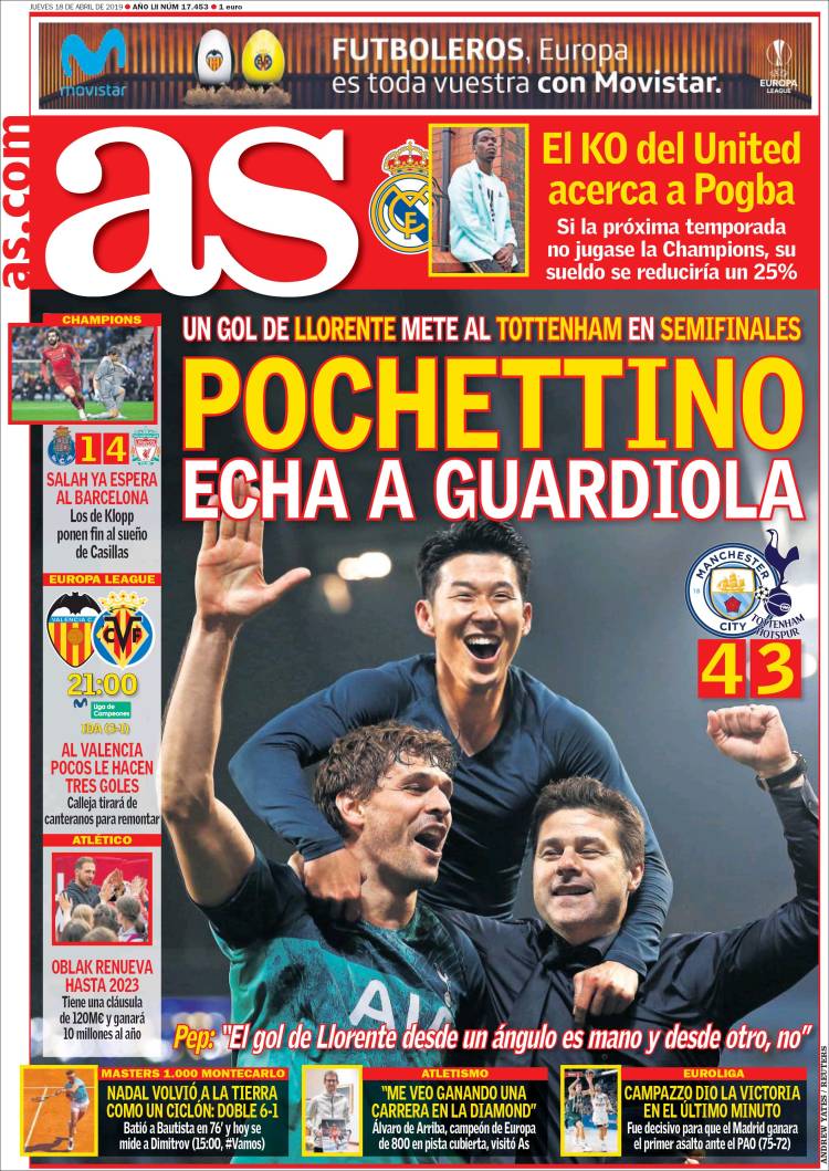 Hugo Lloris junto a sus compañeros del Tottenham lograron pasar a las Semifinales de la Champions. (L’Equipe)