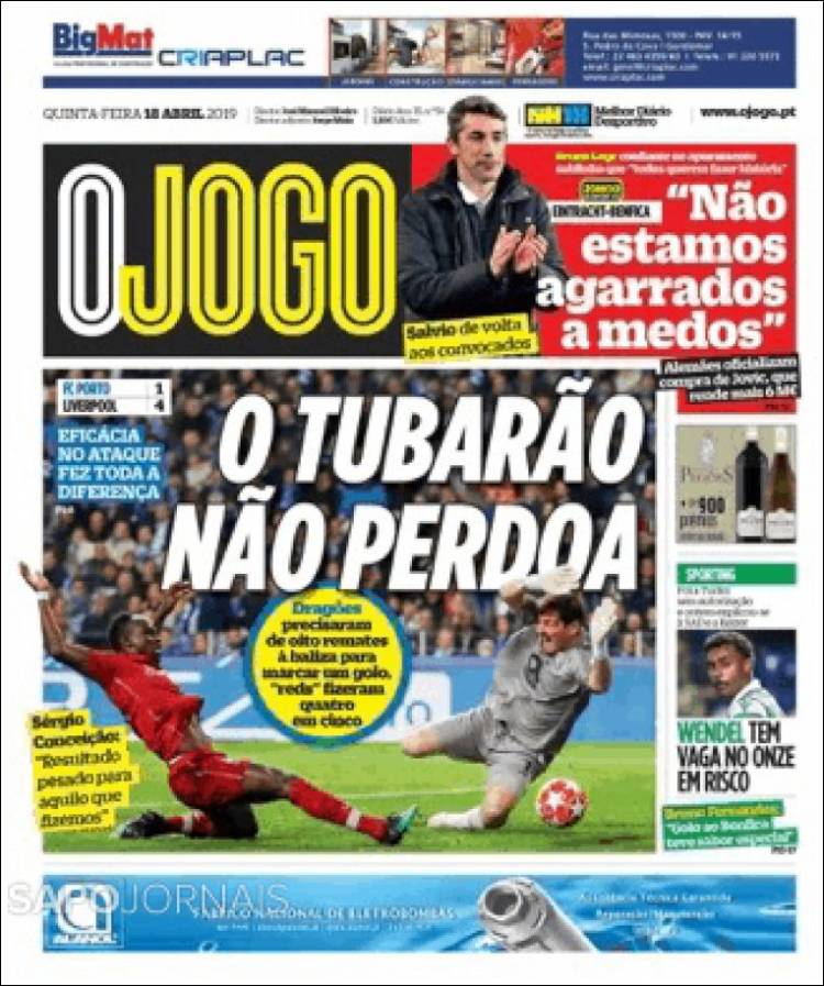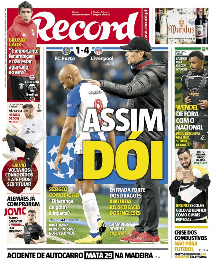 El Porto quedó fuera de la Champions League tras ser goleado por el Liverpool. (Record)