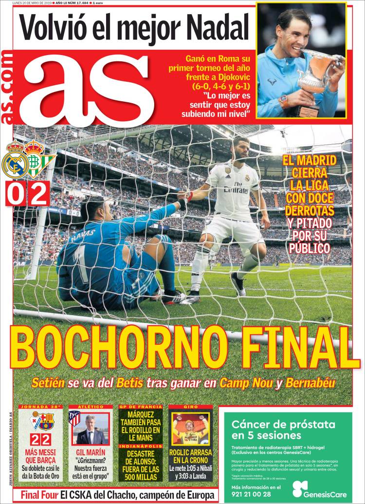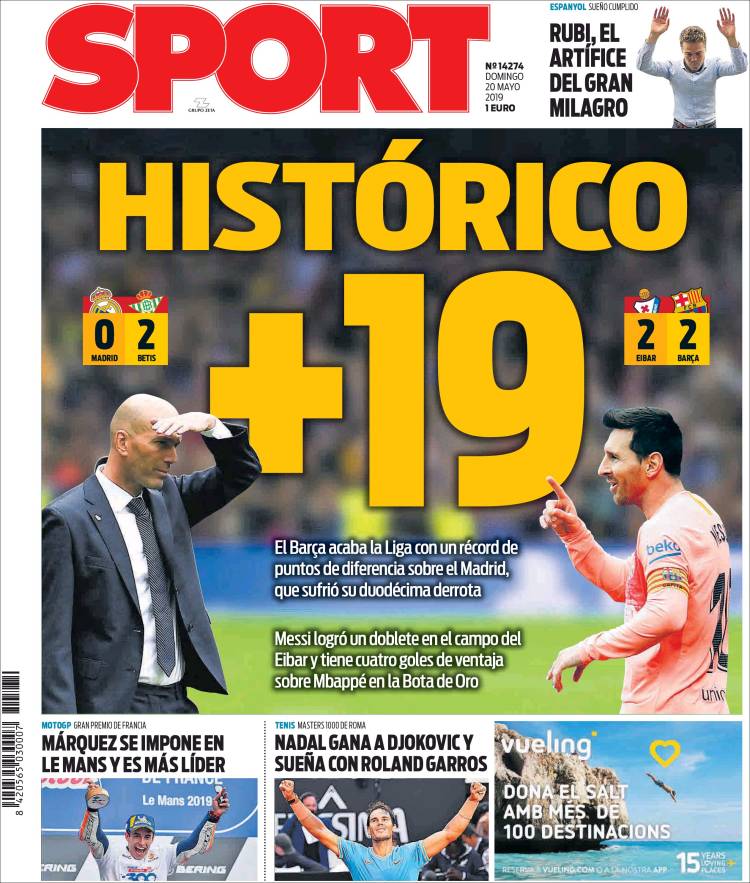 Portadas de los diarios deportivos del 20 de mayo de 2019