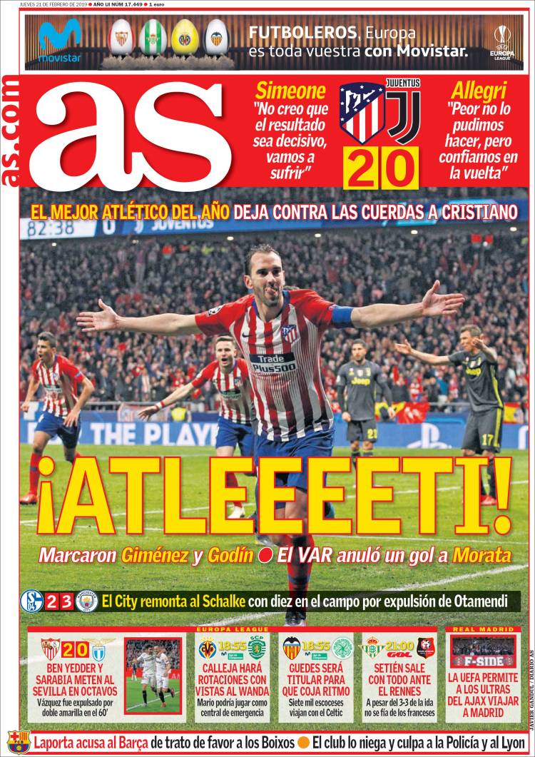 El Atlético de Madrid tomó ventaja en su serie de Octavos de Final de la Champions y pone en aprietos la participación de la Juventus. (Marca)