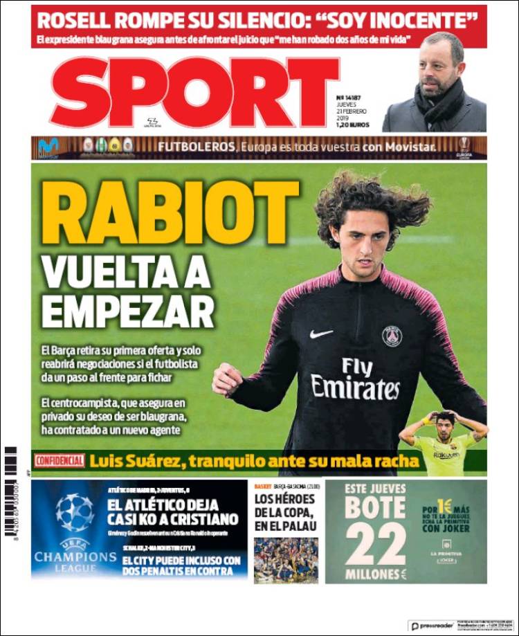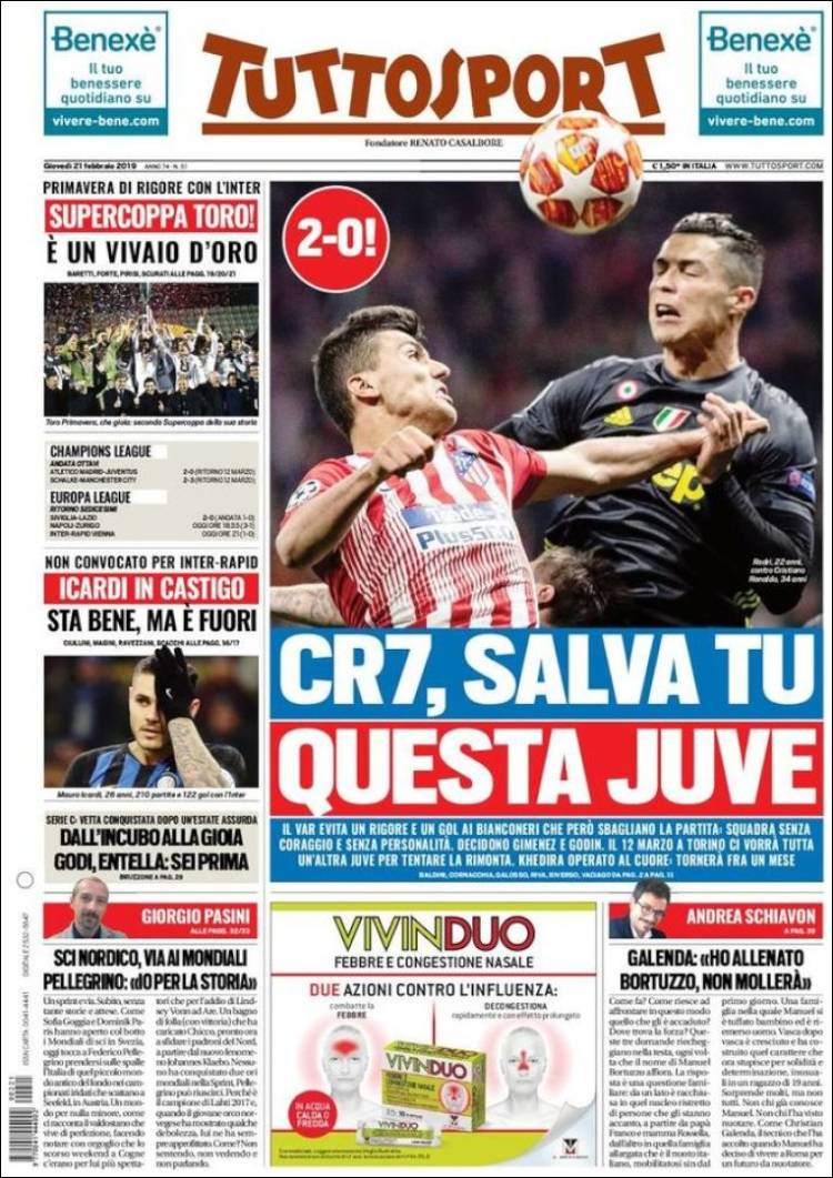 La Juve arriesga su participación en Champions tras perder ante el ‘Atleti’. (Tuttosport)