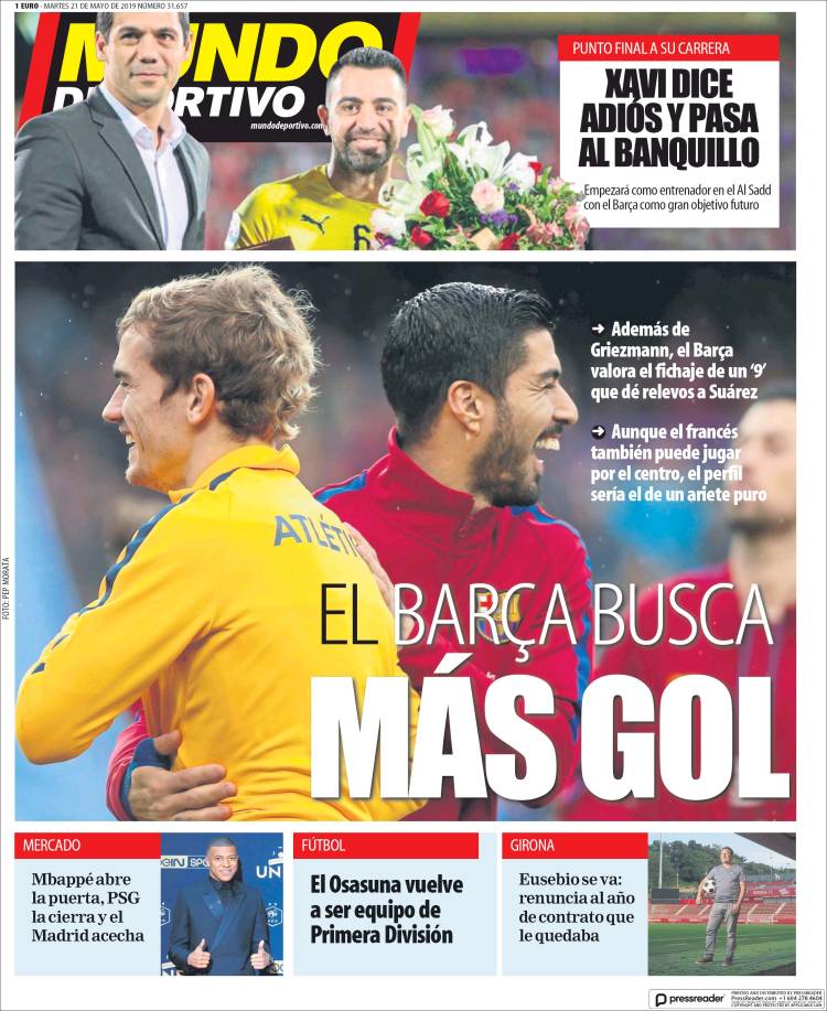 Antoine Griezmann podría ser fichado por el Barça, pero el equipo blaugrana está dispuesto a fichar un nueve fijo como sustituto de Luis Suárez. (Mundo Deportivo)