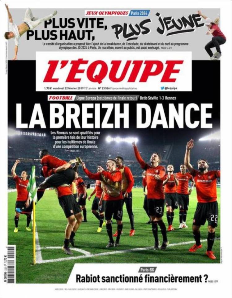 El Rennes avanzó a los Octavos de Final de la Europa League tras eliminar al Real Betis. (L’Equipe)