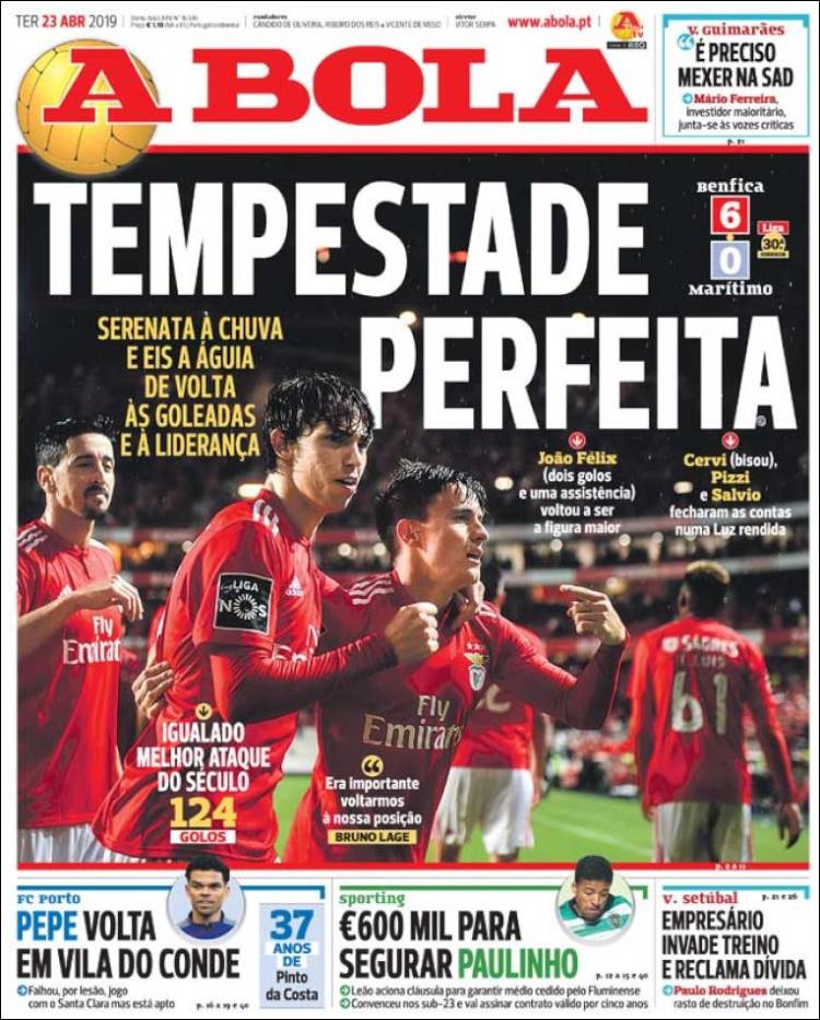 El Benfica volvió a golear en la liga de Portugal y está vez la víctima fue el Marítimo. (A Bola)