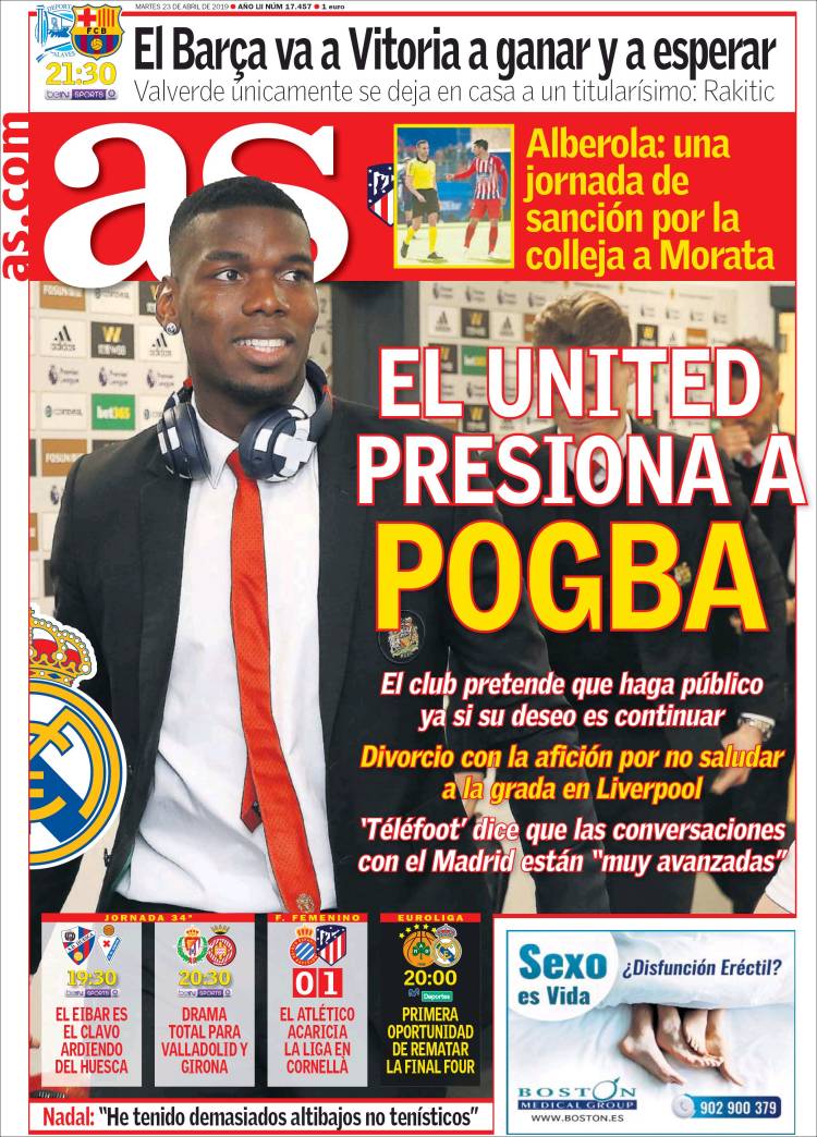 El Manchester United presiona a Paul Pogba para mantenerse en el club. Al parecer, el francés ya tiene pláticas con el Real Madrid. (As)