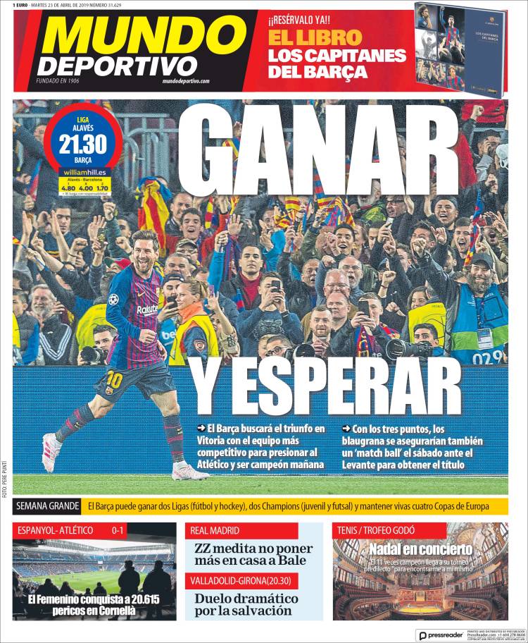El Barça esperará algunos días para consagrarse campeón de la liga española. (Mundo Deportivo)