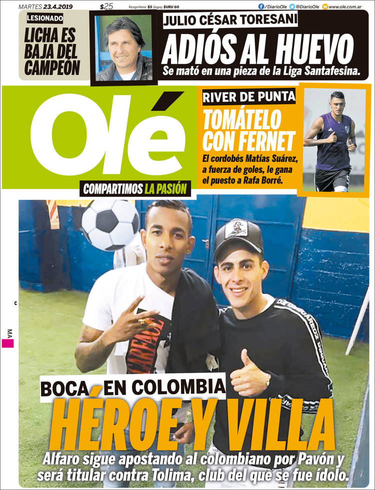 Gustavo Alfaro, entrenador del Boca Jrs., sigue apostando por poner de titular al colombiano Jorman Campuzano que al argentino Cristian Pavón. (Olé)