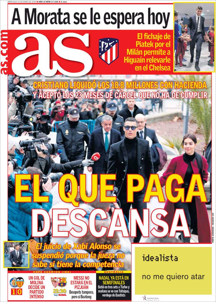 Cristiano Ronaldo llegó a un acuerdo con las autoridades de Madrid para no estar encerrado en la cárcel. (As)