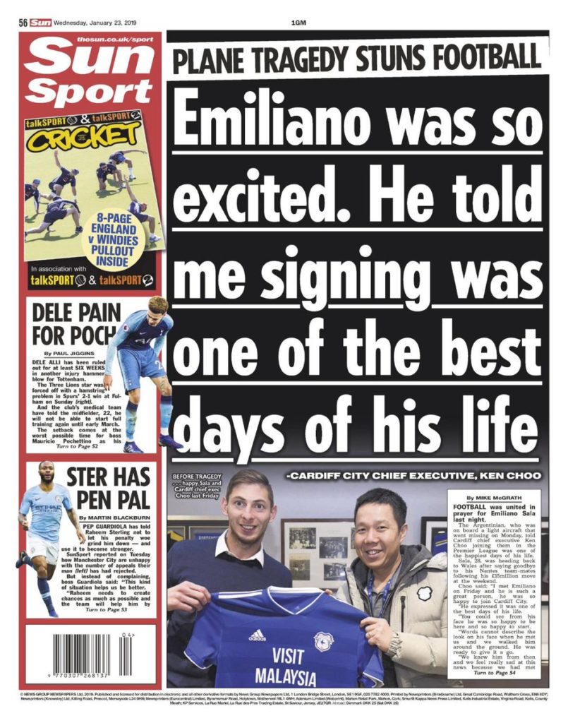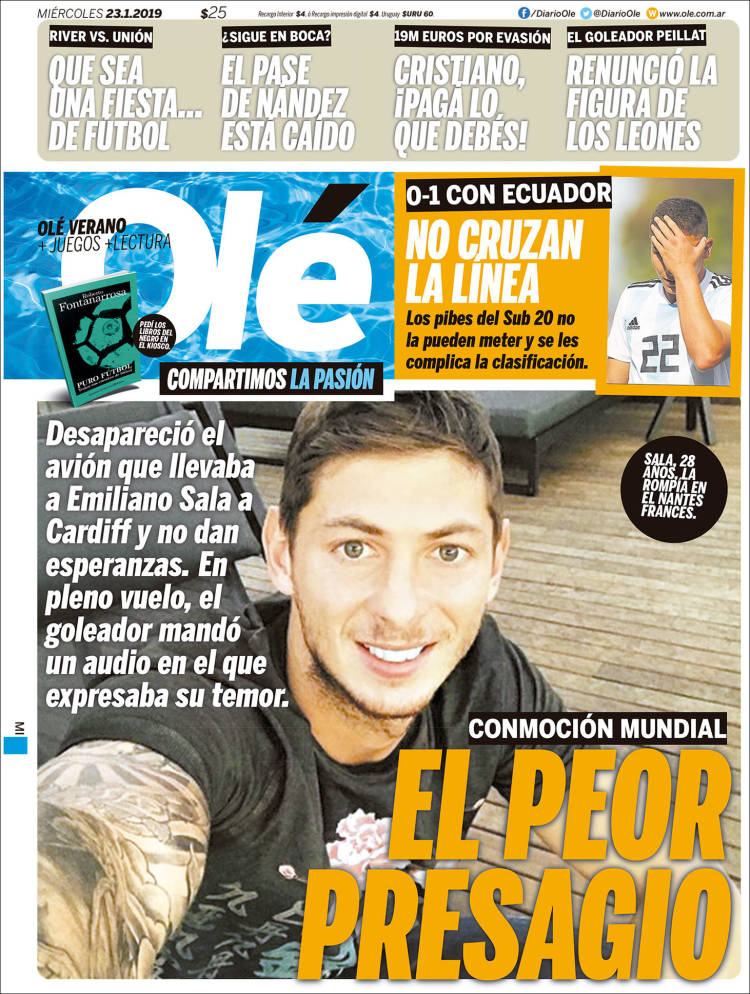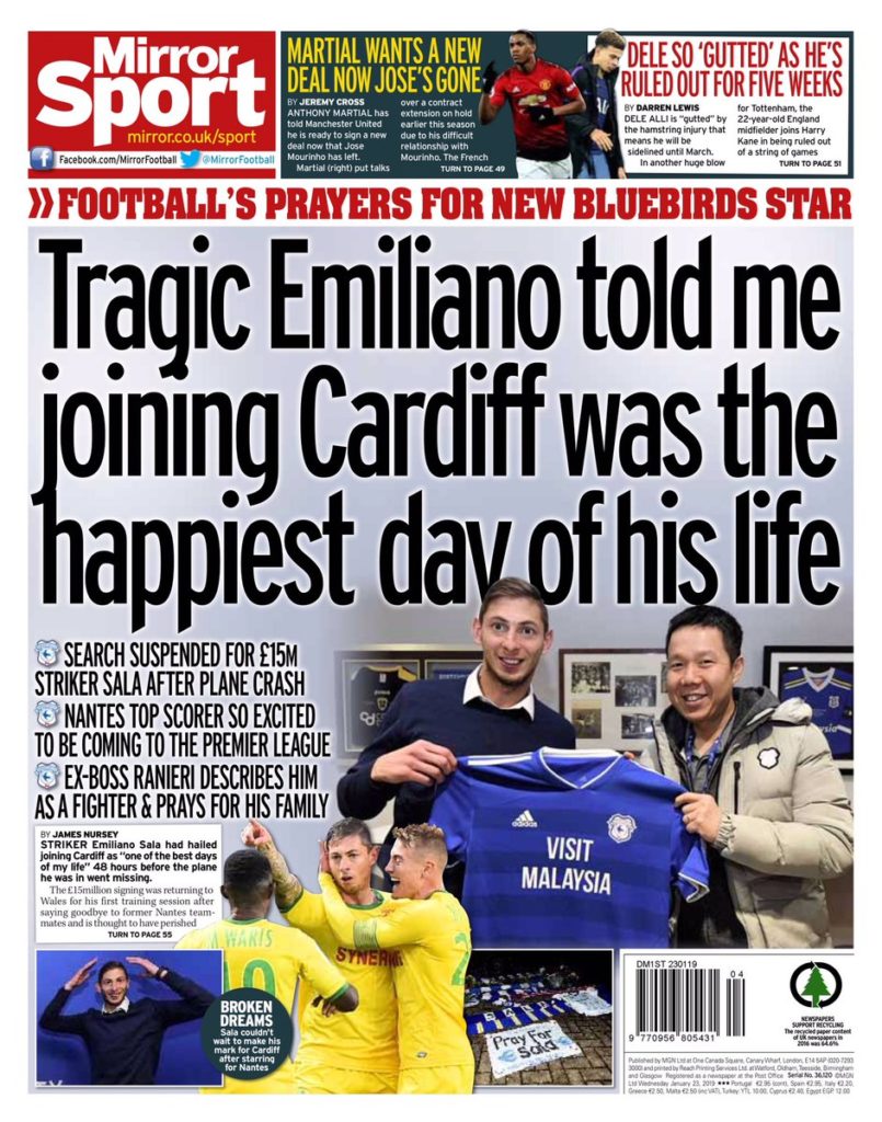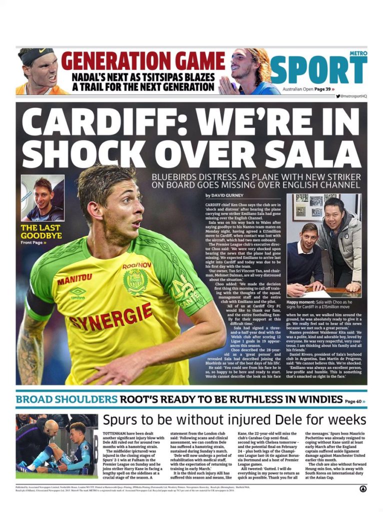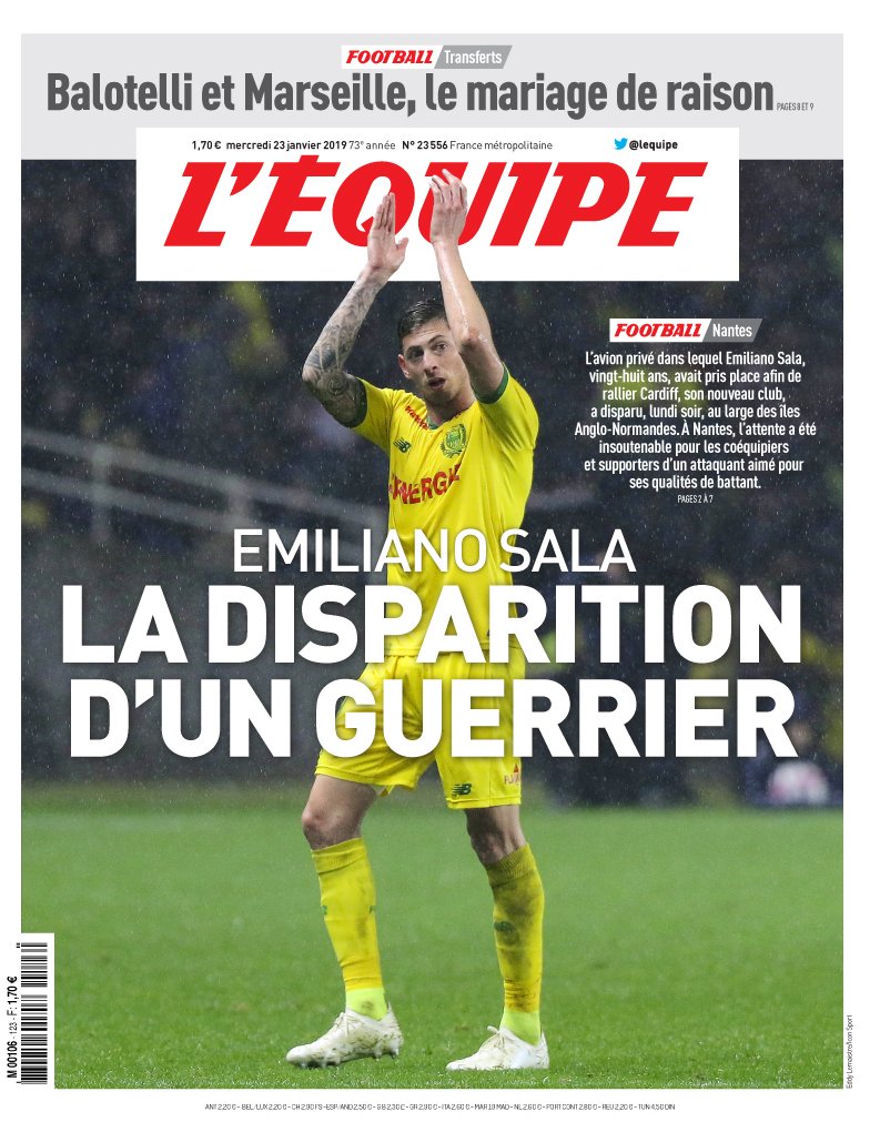 Todo el ámbito futbolístico está consternado con la desaparición de Sala.