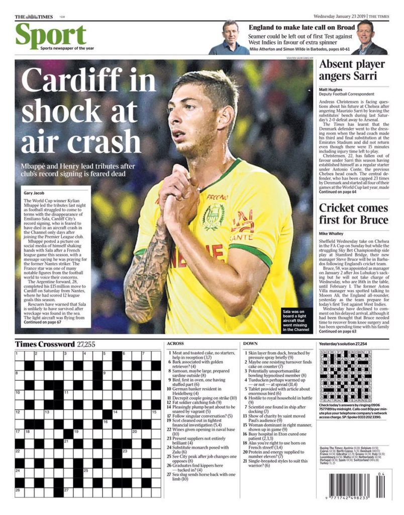 La desaparición de Sala tiene en vilo a todo el mundo futbolístico.
