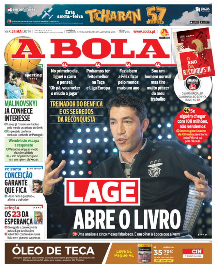 Bruno Lage, entrenador del Benfica, reveló los secretos que le ayudaron a coronar a su equipo en liga. (A Bola)