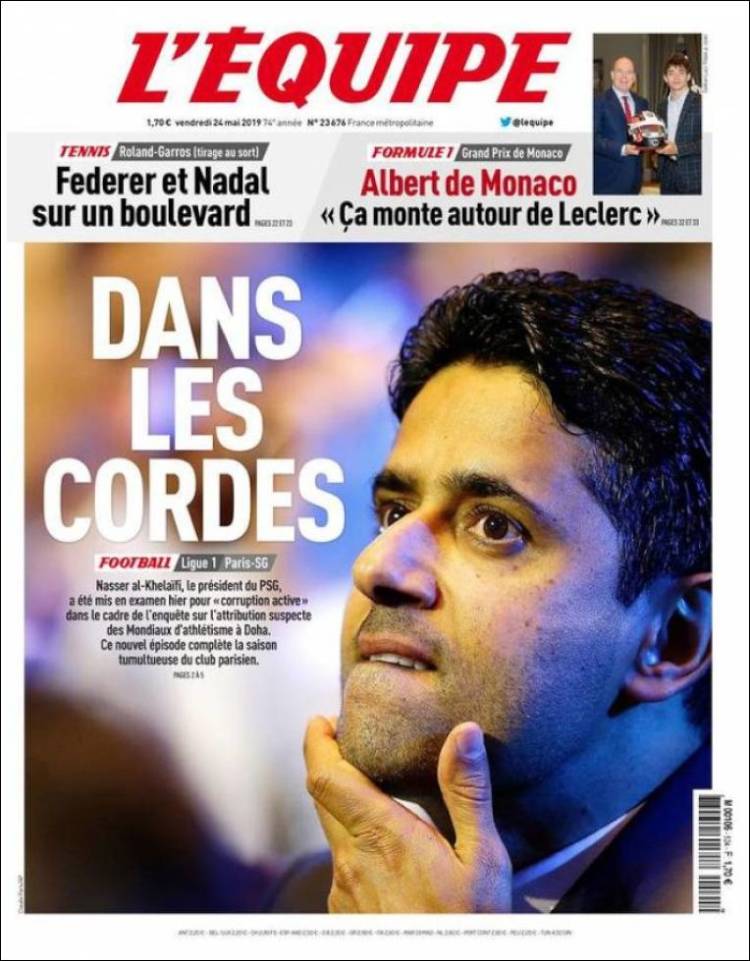 Nasser Al-Khelaïfi, presidente del PSG, es investigado por corrupción. (L’Equipe)