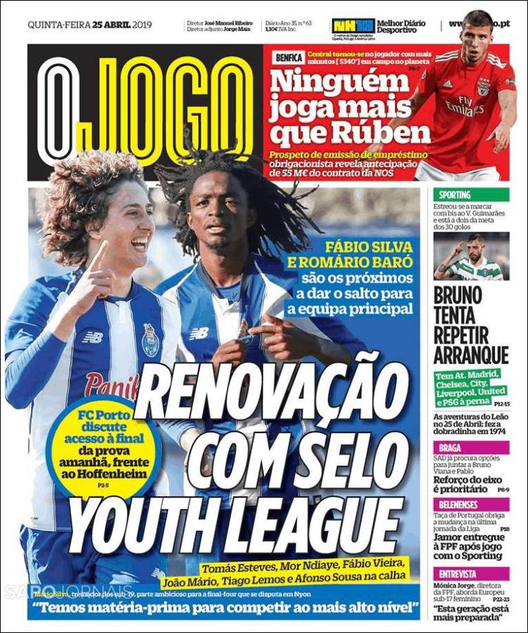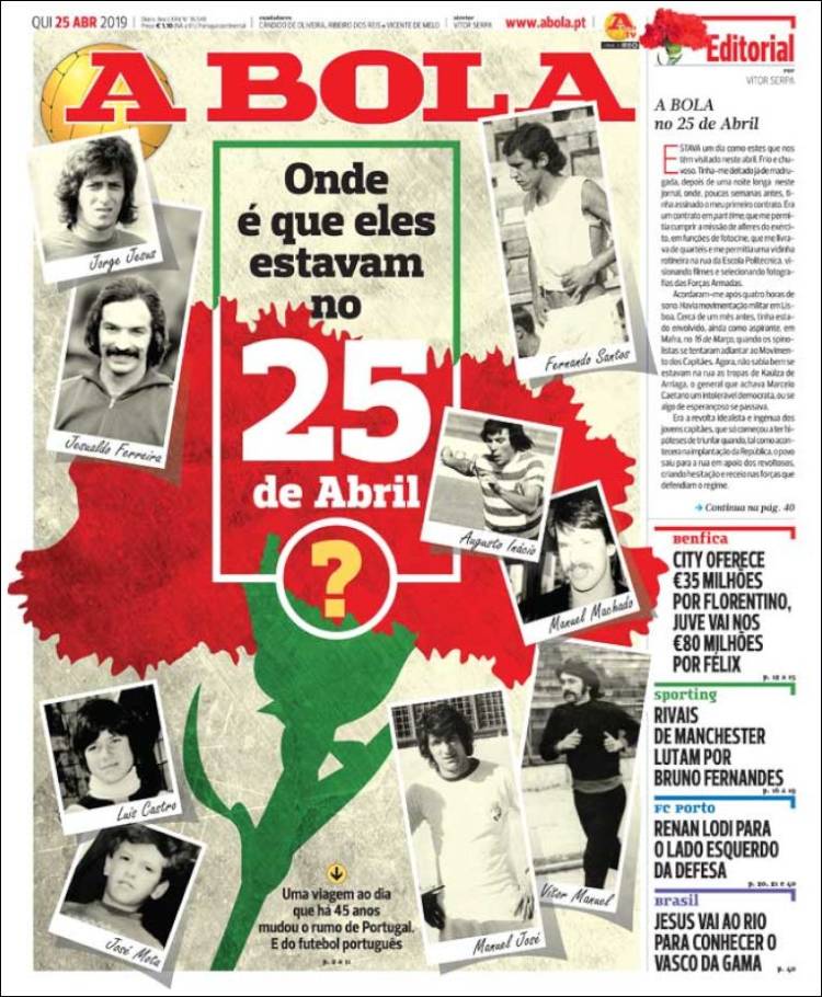 Este diario le dedicó su portada a los 45 años de historia que tiene el futbol de Portugal, destacando a figuras importantes. (A Bola)
