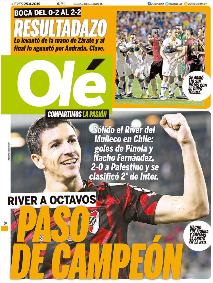 River Plate logró su pase a los Octavos de Final de la Copa Libertadores, luego de vencer al Palestino de Chile. (Olé)