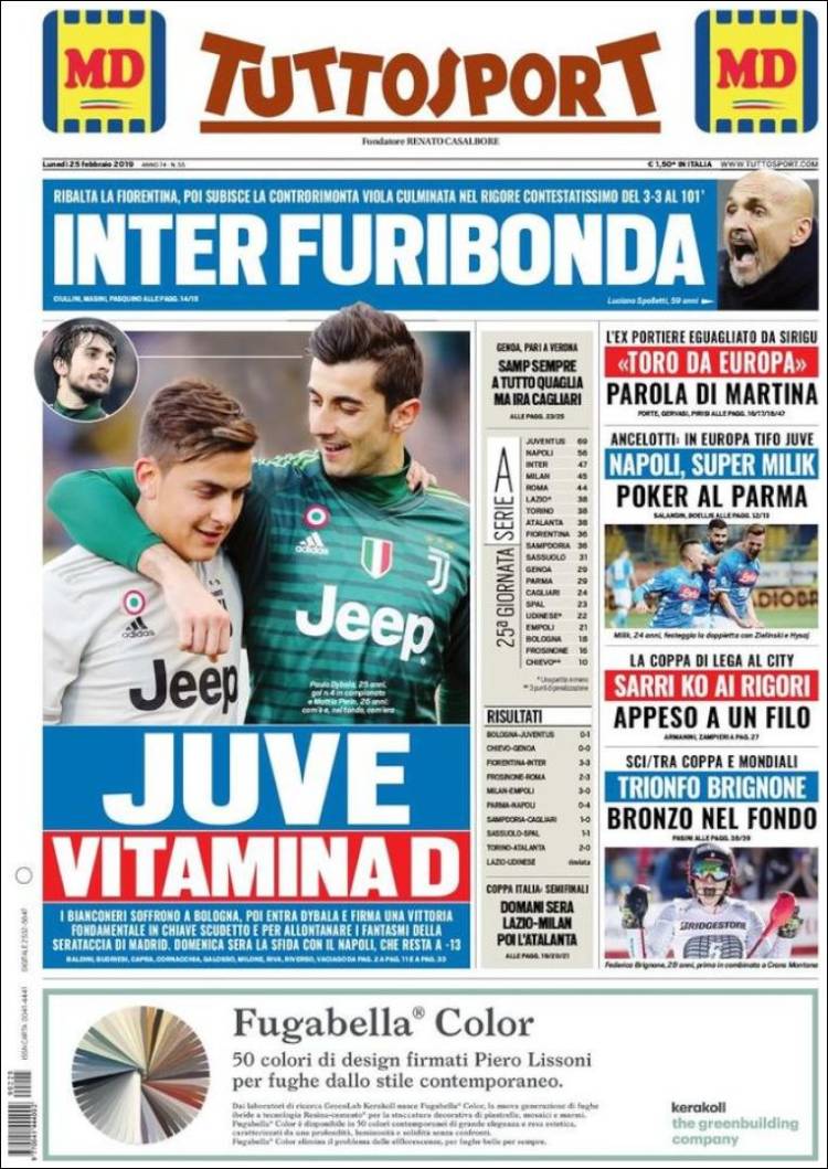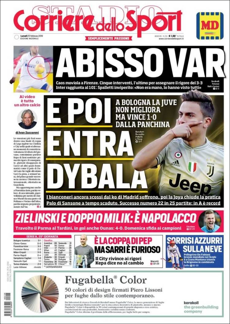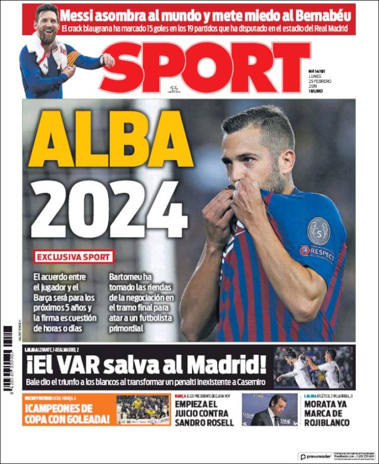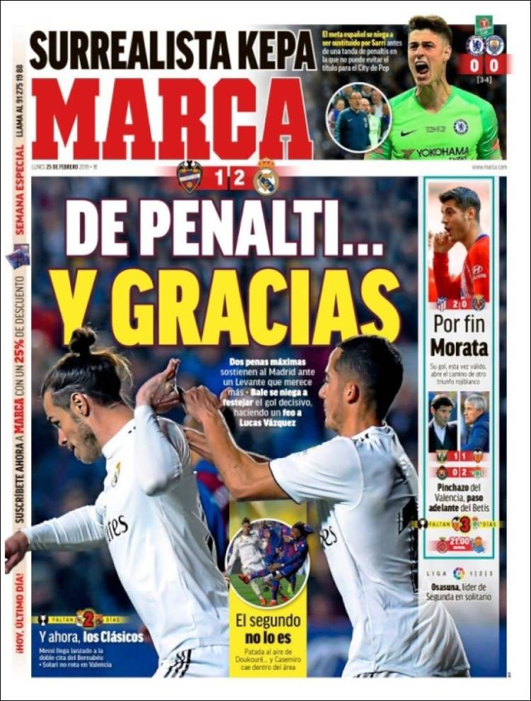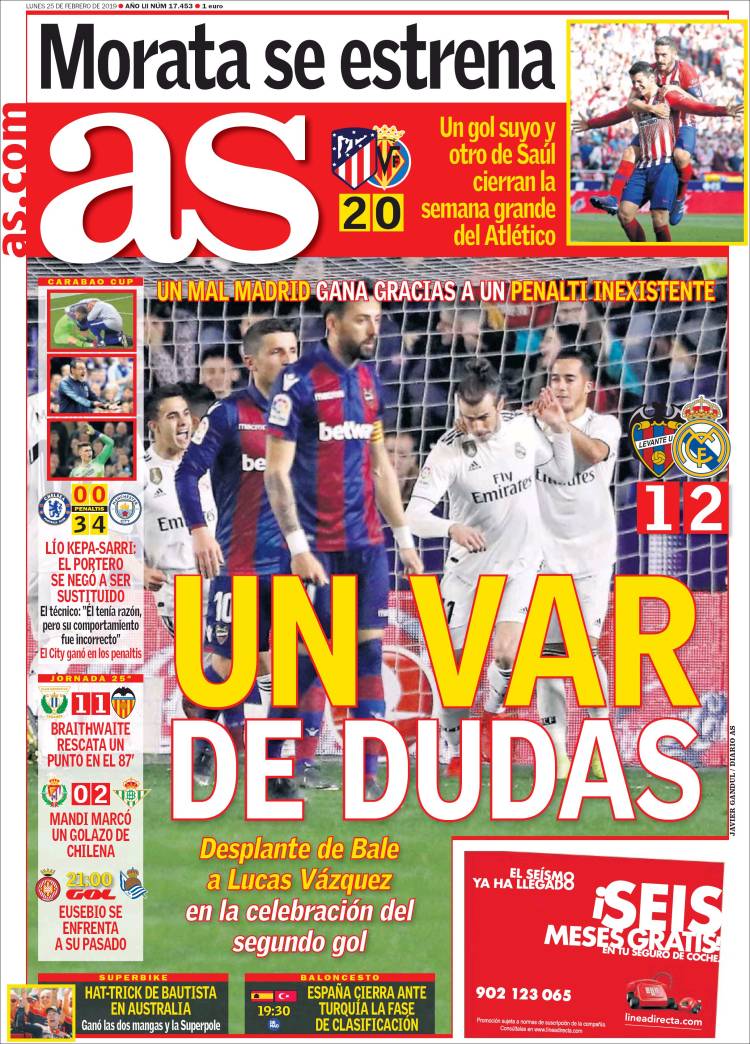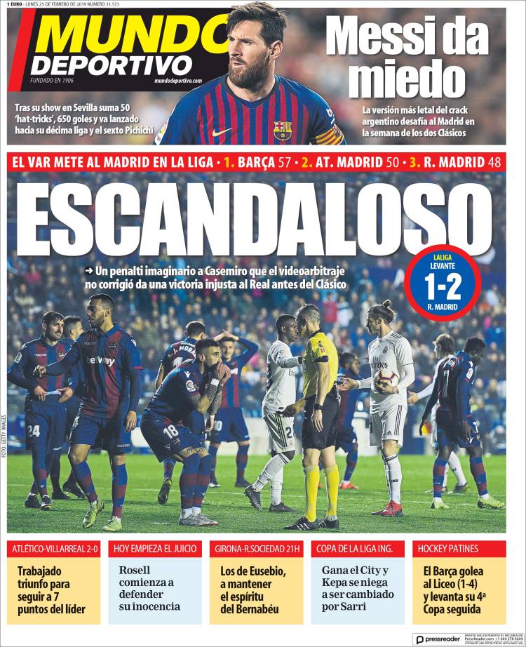 Portadas de los diarios deportivos del 25 de febrero de 2019