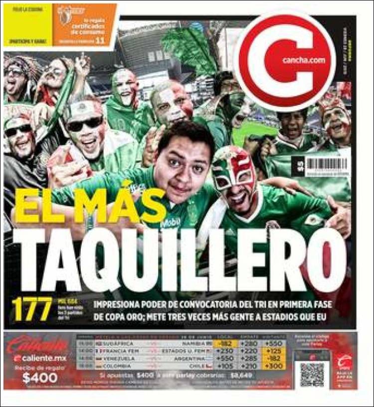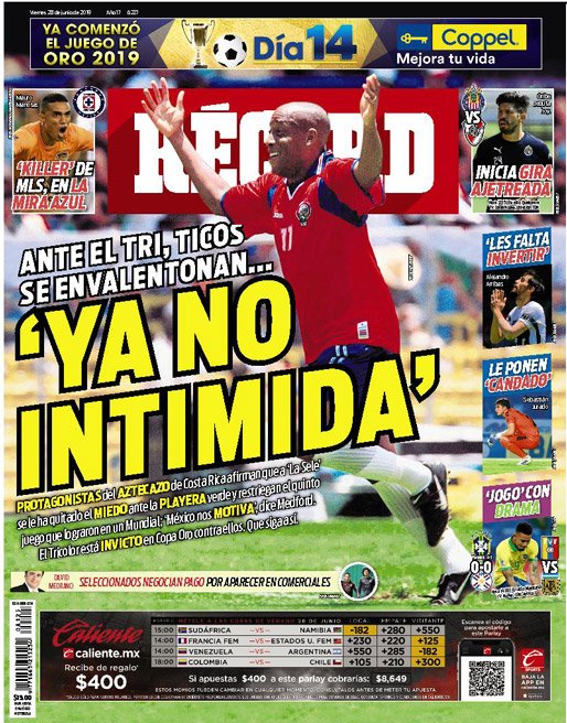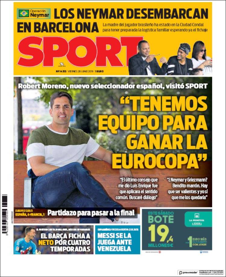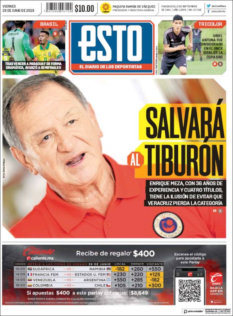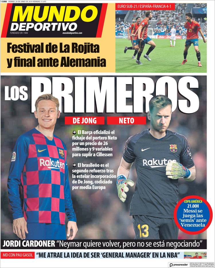 Adrien Rabiot podría llegar a la Juventus. (Tuttosport) Shoya Nakajima podría ser fichado por el Porto. (O Jogo) El ‘Tri’ tiene la mejor asistencia en Estados Unidos. (Cancha) ‘Ojitos’ Meza buscará salvar al Veracruz de la porcentual. (Esto) La Selección Femenil de Francia enfrentará a Estados Unidos en los Cuartos de Final del Mundial. (L’Equipe) Los jugadores de la Selección de Costa Rica aseguran que el ‘Tri’ no intimida. (Récord) Rosier, Camacho y Eduardo, serían los próximos jugadores en ser anunciados por el Sporting de Lisboa. (Record) La Selección de España venció a Francia y avanzó a la Final de la Eurocopa Sub 21, fase en la que enfrentará a Alemania. (Marca) Rafael Camacho es nuevo jugador del Sporting de Lisboa procedente del Liverpool. (A Bola) Robert Moreno aseguró que tiene equipo para ganar la Euro 2020. (Sport) Frenkie de Jong y Neto son los primeros refuerzos que Barça fichó para la siguiente temporada. (Mundo Deportivo)Relacionado