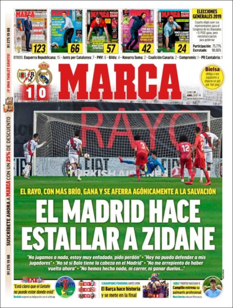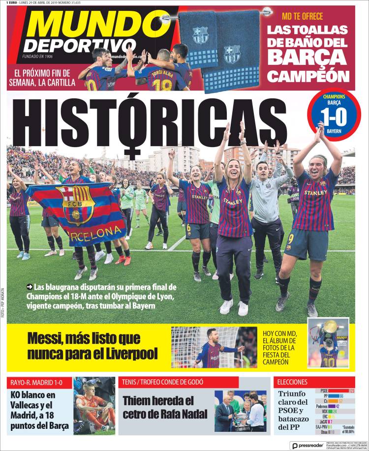 Portadas de los diarios deportivos del 29 de abril de 2019