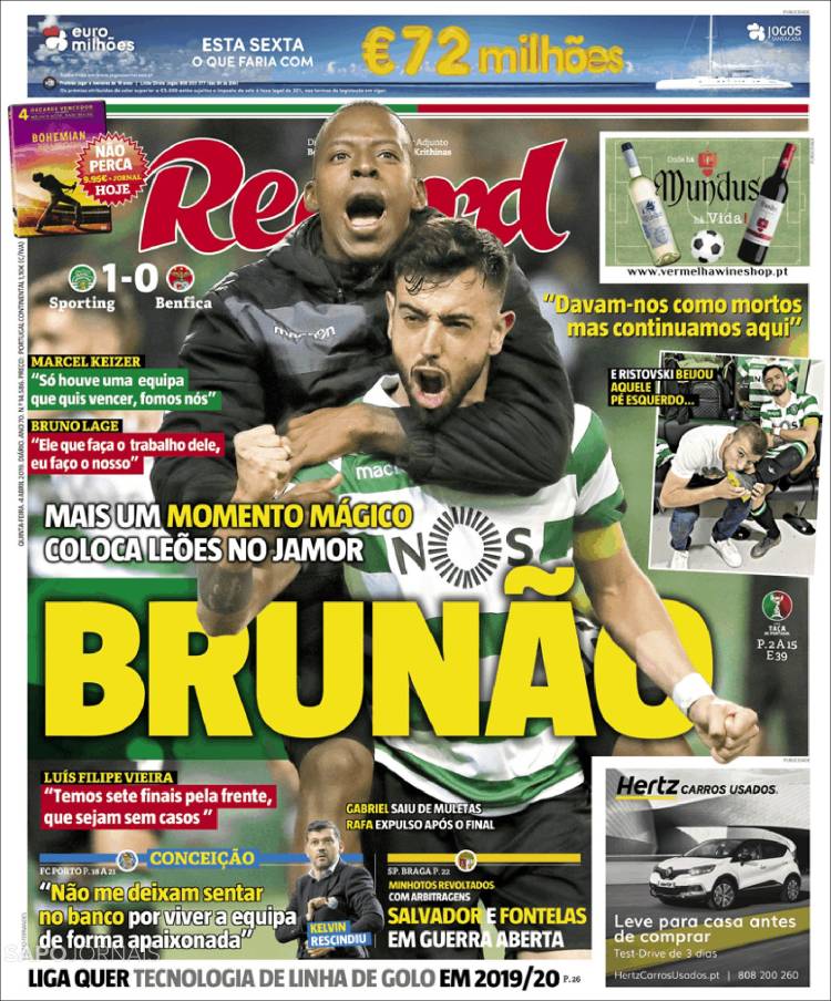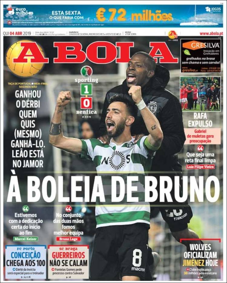 Bruno Fernandes fue el héroe del Sporting de Lisboa, luego de hacer el único tanto de la Semifinal frente a Benfica y que significó el pase a la Final de Copa. (O Jogo)