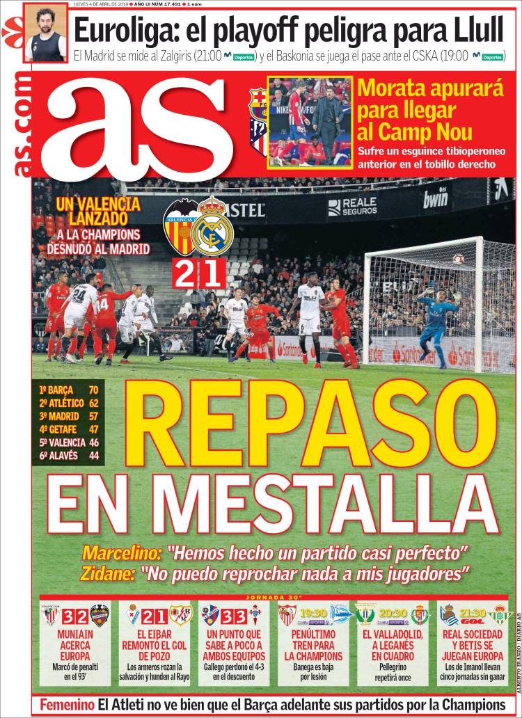 El Real Madrid volvió a perder en la actual temporada de liga y ahora, en Mestalla. (As)