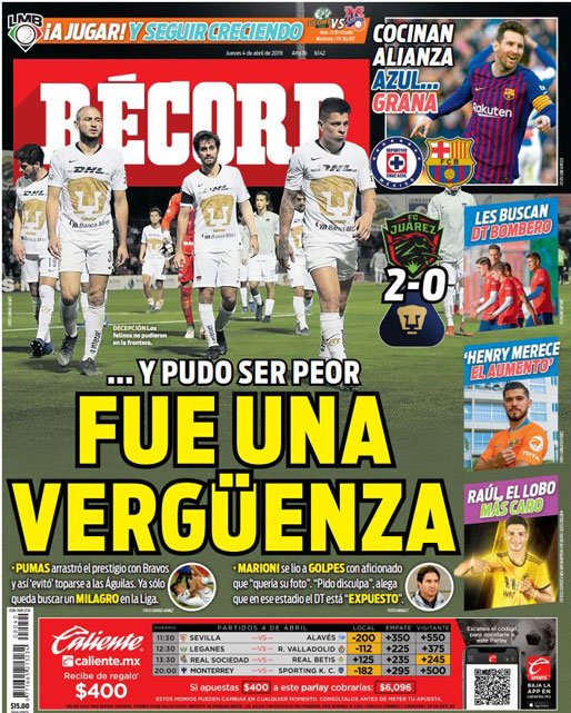 Pumas fue eliminado de Copa MX y Juárez será el rival del América. (Récord)