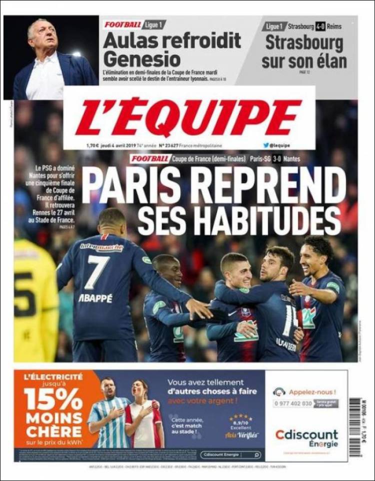 El PSG eliminó a Nantes en la Semifinal de la Copa de Francia. (L’Equipe)