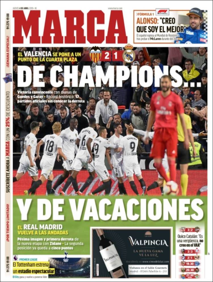 El Valencia venció al Real Madrid y se acerca a puestos de Champions League. (Marca)