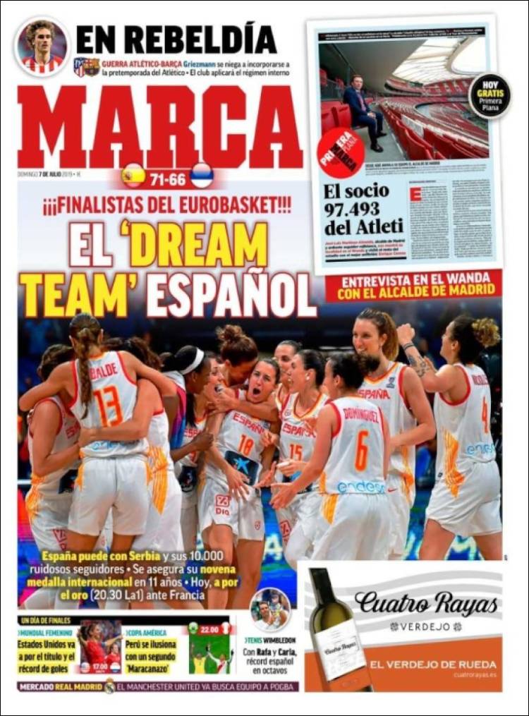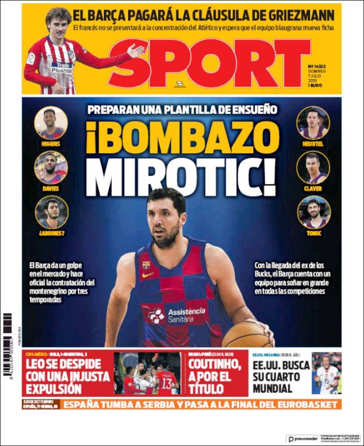 Portadas de los diarios deportivos del 7 de julio de 2019