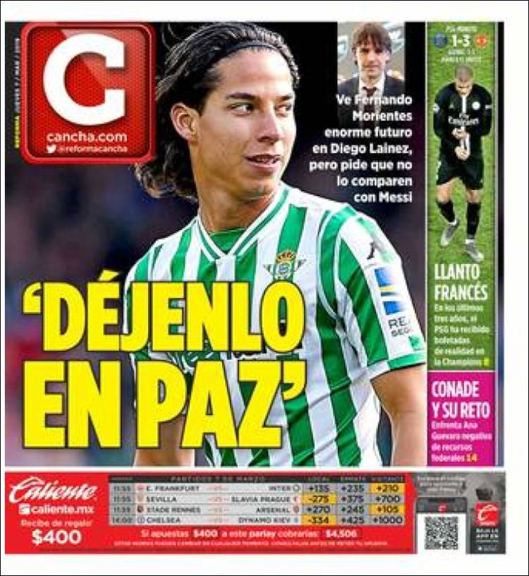 Fernando Morientes no quiere que empiecen a comparar a Diego Lainez con Messi. (Cancha)