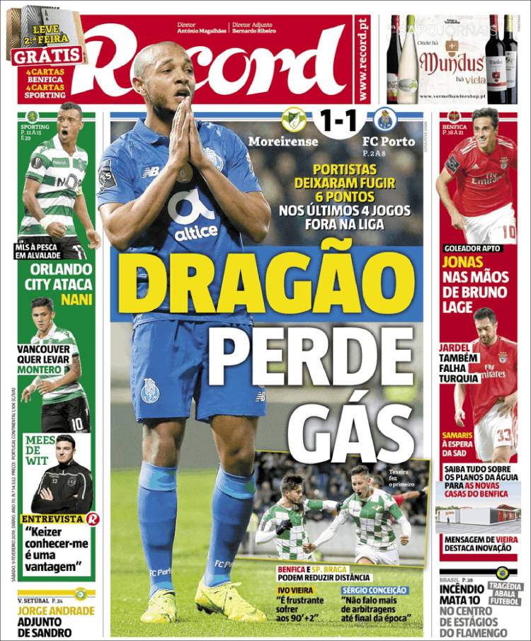 El Porto sigue perdiendo puntos. En su visita al Comendador Joaquim de Almeida Freitas, los ‘Dragones’ empataron frente al Moreirense. (O Jogo)